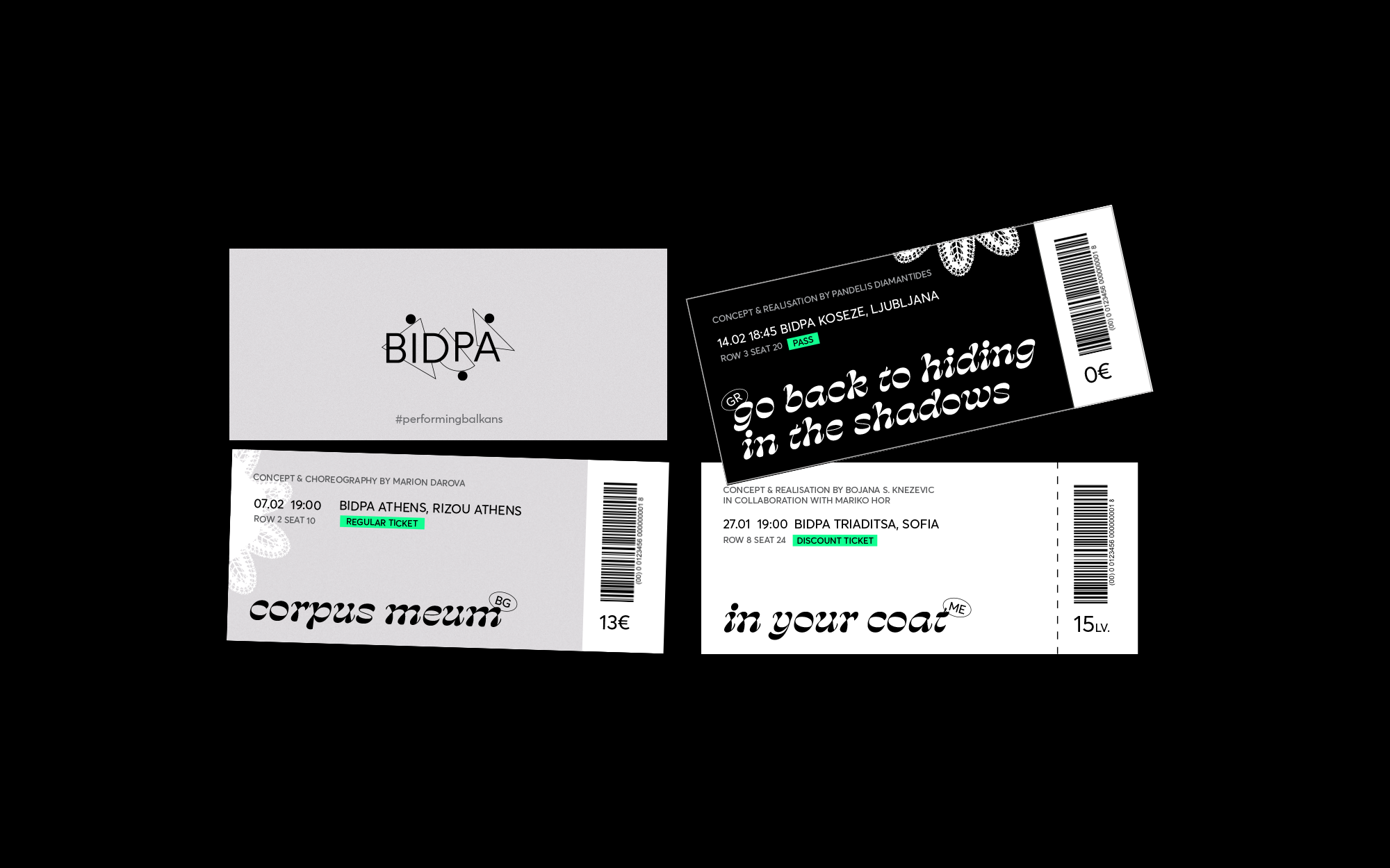 BIDPA (BALKAN INSTITUTE OF DRAMA AND PERFORMATIVE ARTS) is an identity for an imaginary (for the foreseeable future) institute called BIDPA that gathers all the Balkan countries in a collaborative action in the field of performative arts. With the intention of spreading the idea of United Balkans.